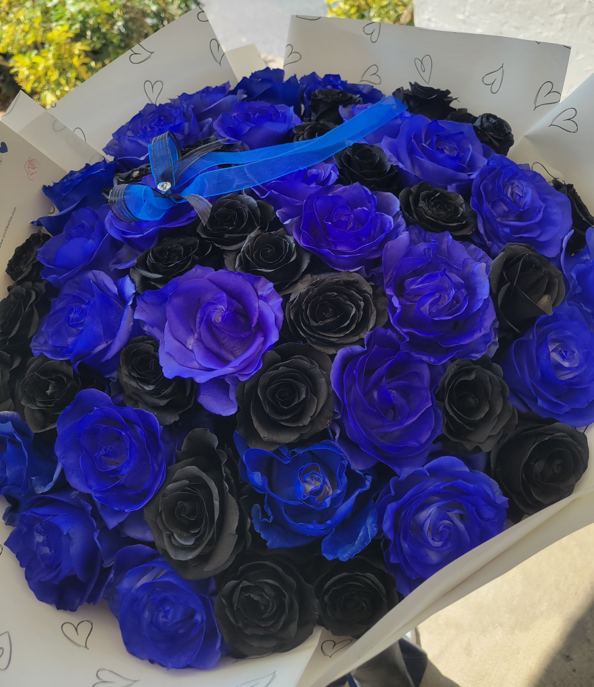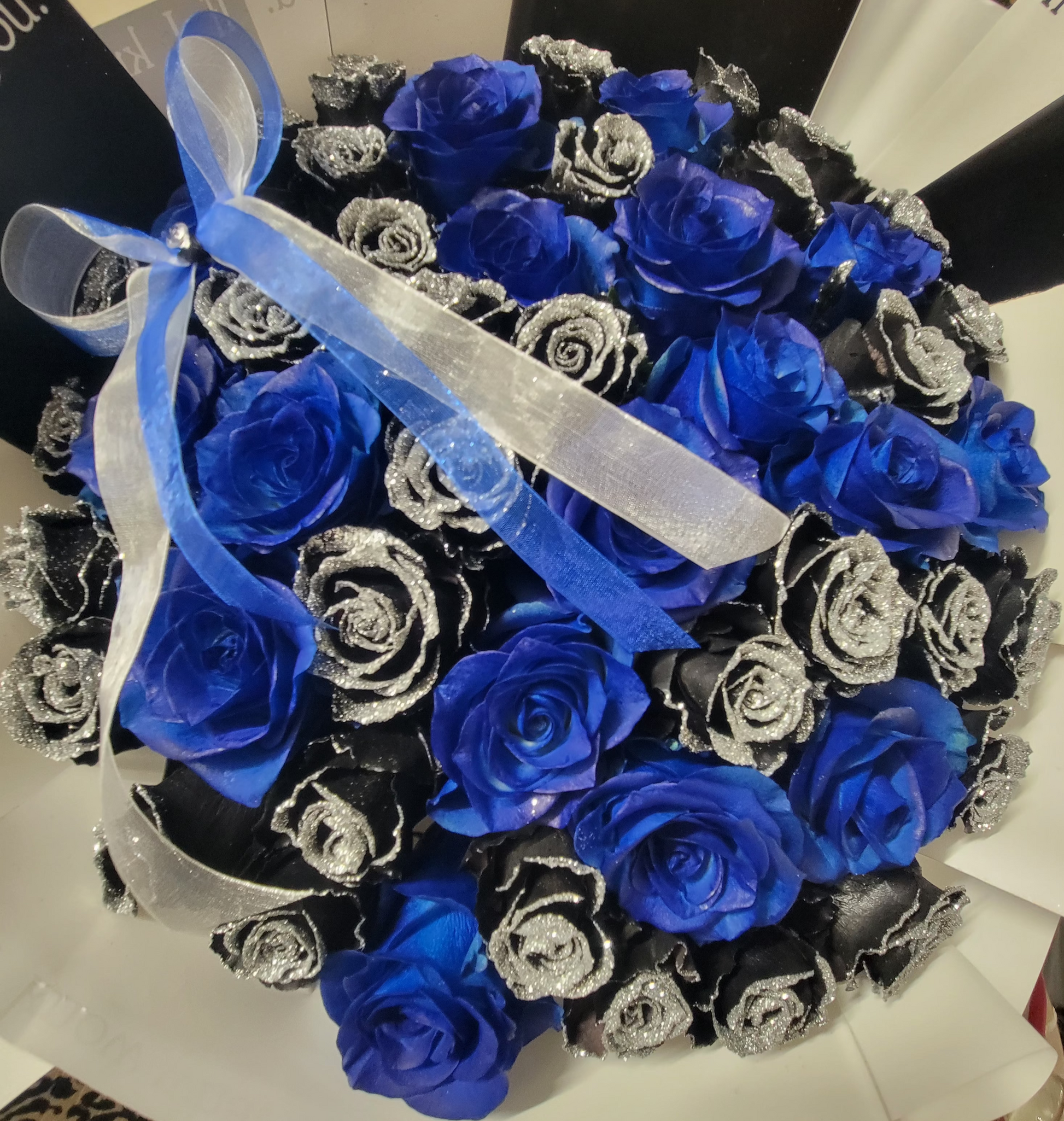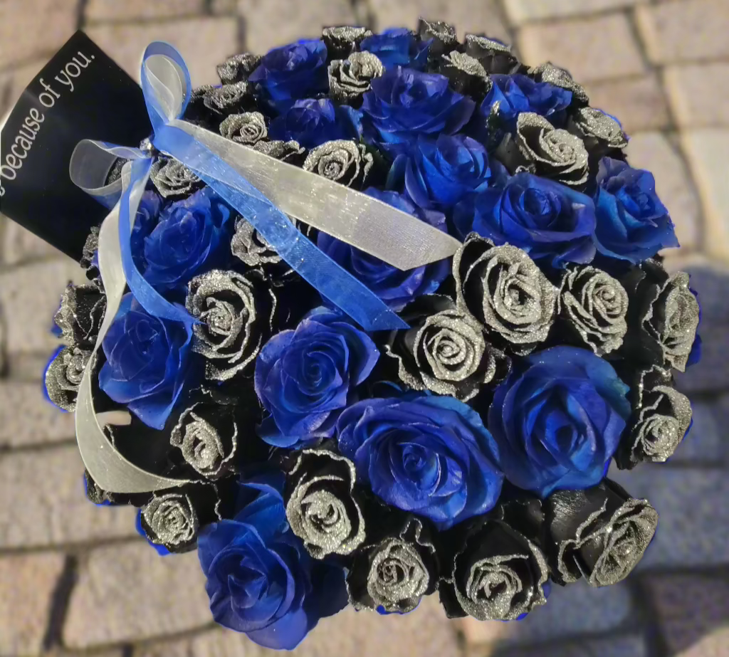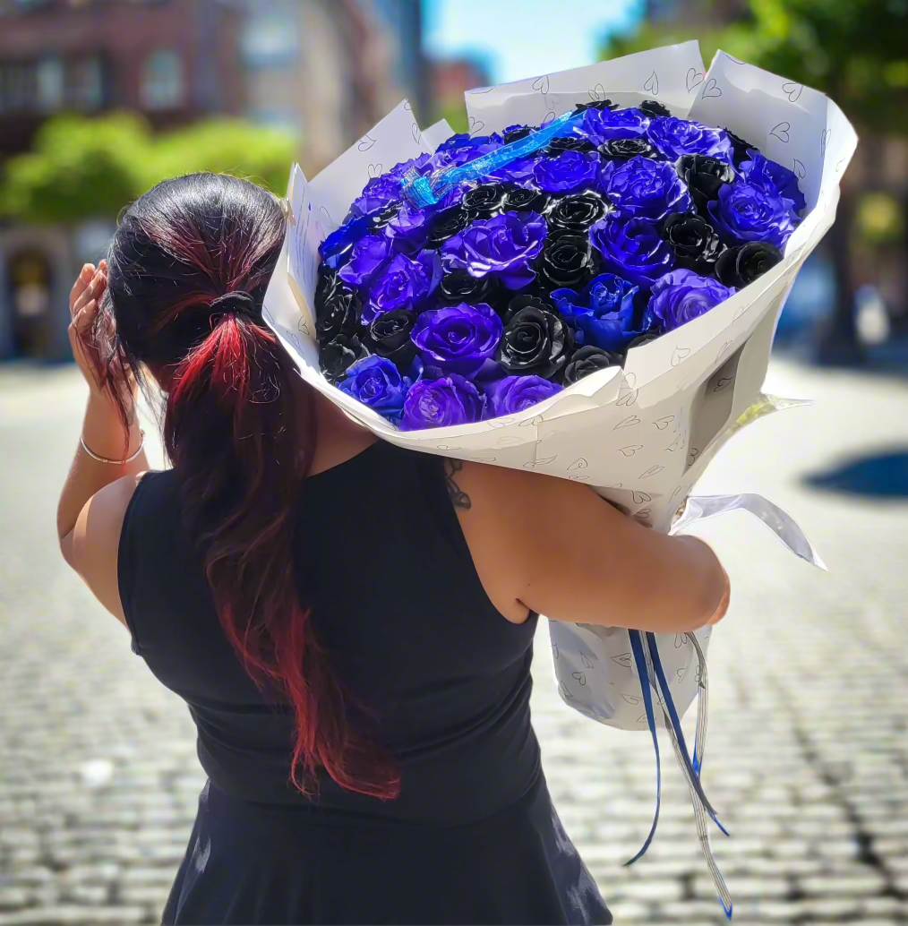 Dive into the enchanting world of Mystic Twilight with our Black and Blue Rose Bouquet. This captivating arrangement features a harmonious blend of deep black and vibrant blue roses, creating a stunning visual contrast that symbolizes mystery and serenity. Perfect for those who appreciate the beauty of the unconventional, this bouquet is ideal for expressing deep emotions, celebrating unique occasions, or simply adding a touch of elegance to any setting. Let the Mystic Twilight bouquet be a reminder of the beauty found in contrasts and the allure of the unknown.