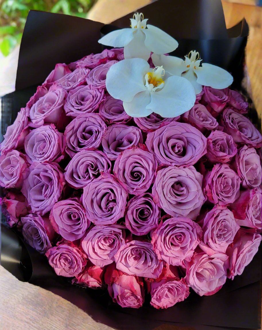 Captivate with regal elegance! Our lavender roses are an exquisite choice, fit for royalty. Whether you're declaring her the queen of your heart or him the king of the home, these blooms convey admiration and respect. Lavender roses, rare and enchanting, symbolize splendor and carry the mystique of the "mystical rose," adding a touch of magic to your gift. Surprise them with this enchanting arrangement and witness their delight.