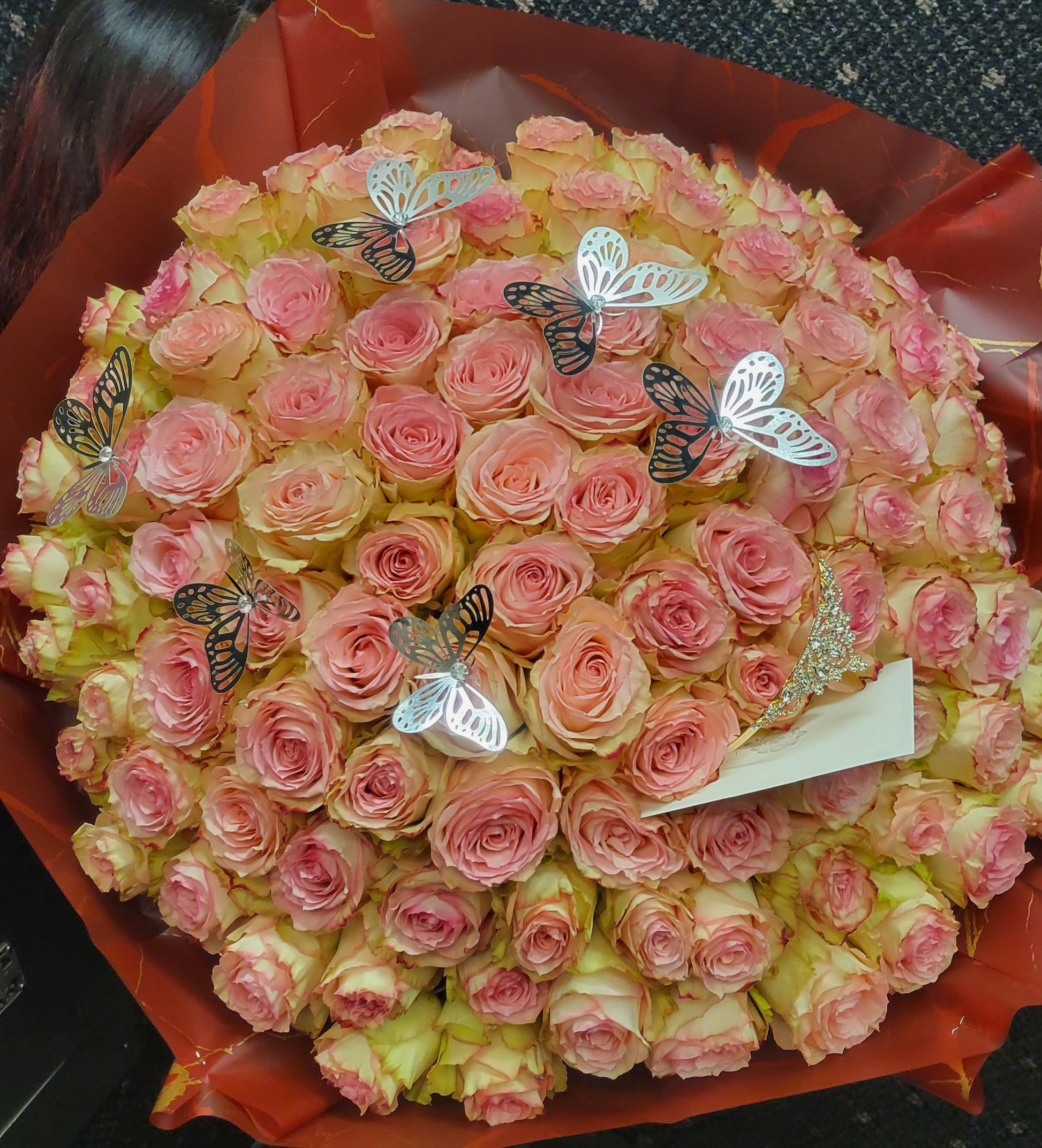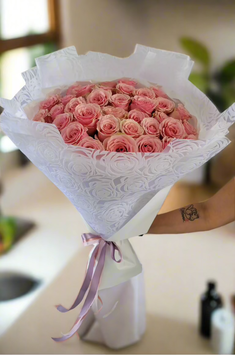 Pink roses symbolize admiration, gratitude, and grace. They are often associated with femininity and elegance, making them an ideal choice to express appreciation, budding romance, or heartfelt sympathy. Whether you’re celebrating a special moment or simply brightening someone’s day, this bouquet conveys your sentiments with sophistication and charm.